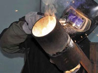 …В толстых комбинезонах, застегнутых на все пуговицы, с томными защитными масками конкурсанты выстроились около собственных рабочих мест. Им предстоит за 50 минут соединить два эталона труб определенного поперечника методом ручной дуговой сварки под углом 45 градусов без поворота. Это задание считается одним из самых сложных и применяется при аттестации электросварщиков в Государственном агентстве контроля и сварки. По европейским нормам шов должен быть так точно и крепко подогнан, чтоб его было нереально порвать даже с помощью специального оборудования.